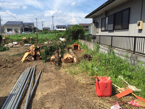 あと庭木が結構、でっかいのが3本ぐらいあったんですよね。それからさらに厄介なことに、道路との境界線に木の根っこ、それが5個あったんですよ。一番でっかいのはシイの木か何かで、直系76センチでしたかね。すごいですよ。